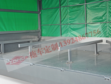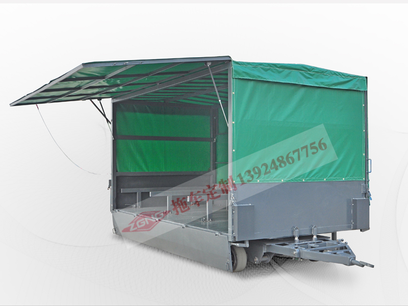 1车顶及前后两端为固定式雨布或金属档板,两侧采用窗帘式活动雨布。